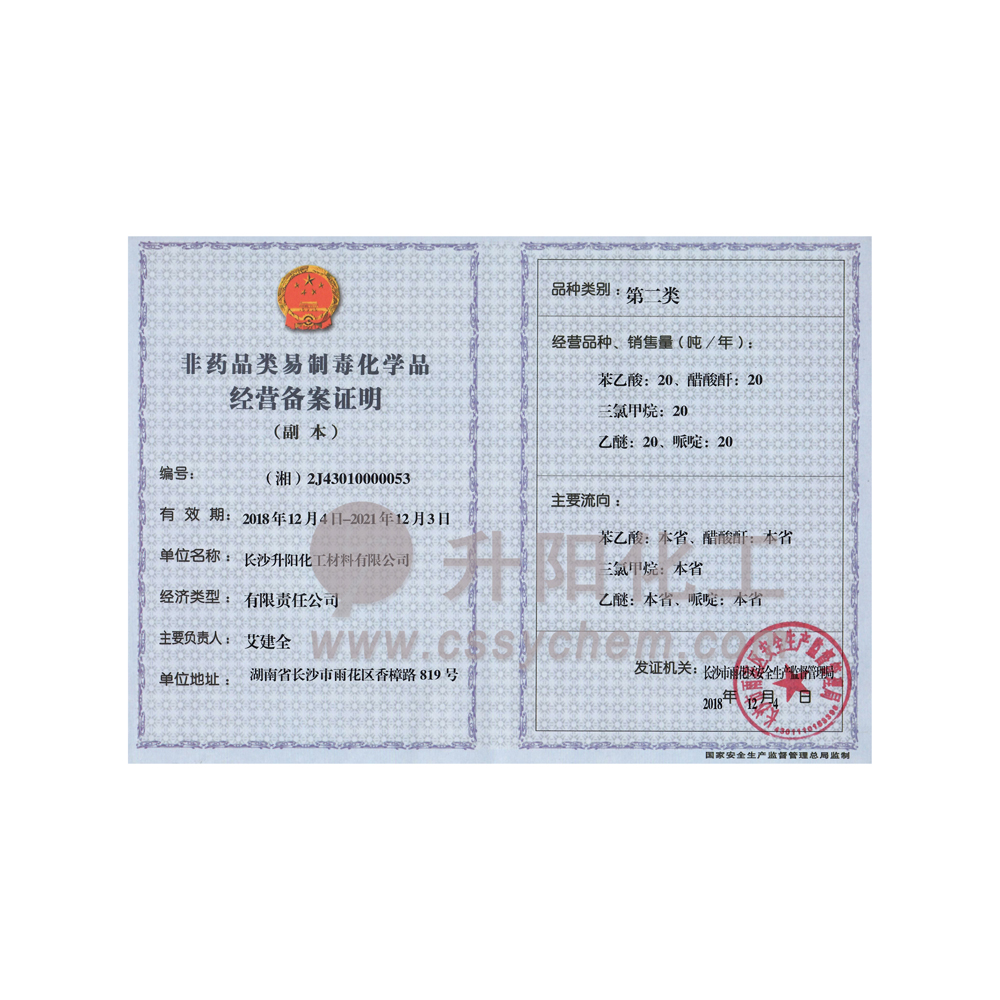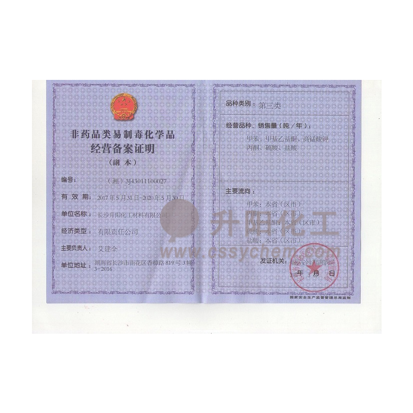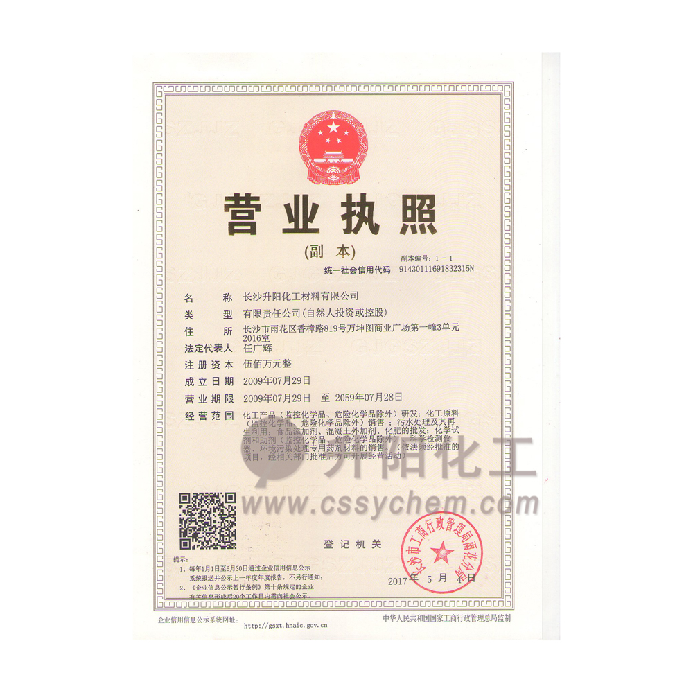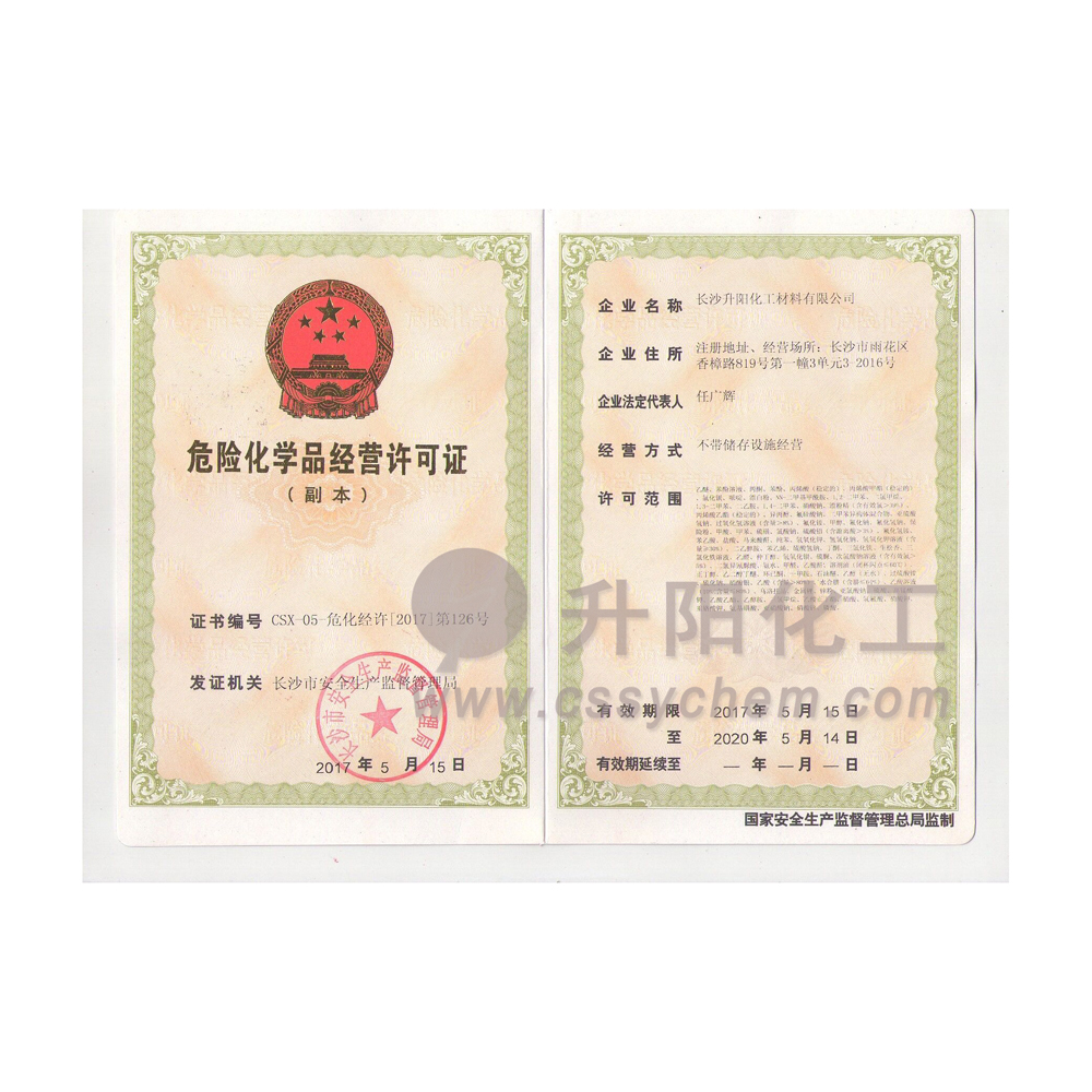 長沙升陽化工材料有限公司成立于2009年,是一家已經(jīng)擁有10年化工原料經(jīng)營歷史的企業(yè)。我們本著“服務至上,以誠為本”的原則,為廣大的新老客戶提供最優(yōu)質(zhì)的產(chǎn)品、最便捷的服務。歷經(jīng)10多年的積淀與發(fā)展,現(xiàn)已成長為湖南省頗具規(guī)模的專業(yè)化學品服務供應商之一。?公司集貿(mào)易,科研,倉儲,物流為